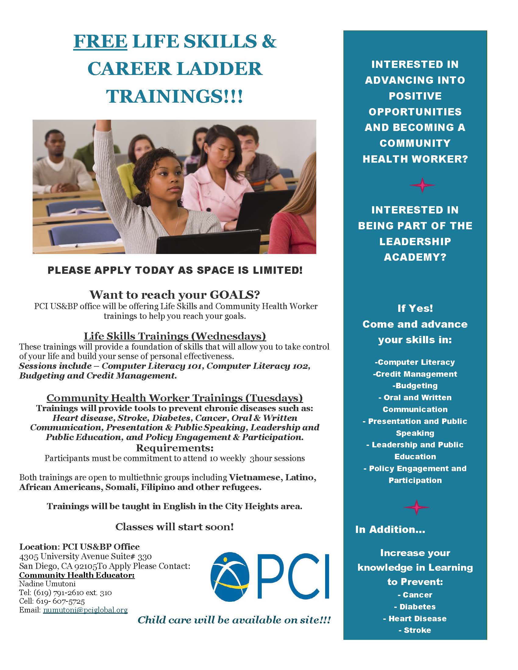 Free Life Skills and Career Ladder Trainings!!!